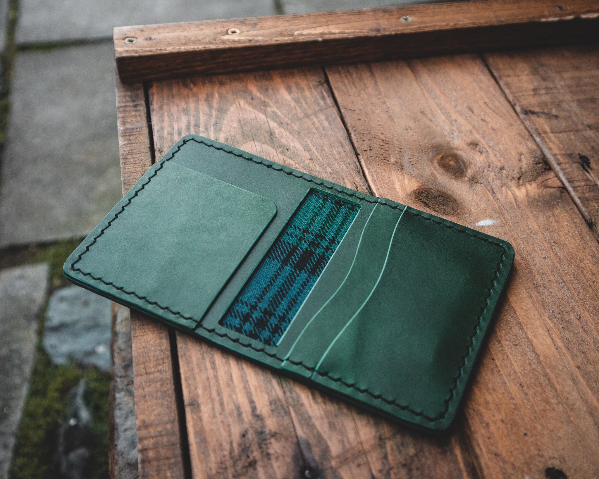 Our handmade and hand stitched Nevis wallets are made from the finest full grain, vegetable tanned Italian leathers hand Lined with some absolutely beautiful handmade Tartan from the master Kilt makers Macgregor and Macduff.